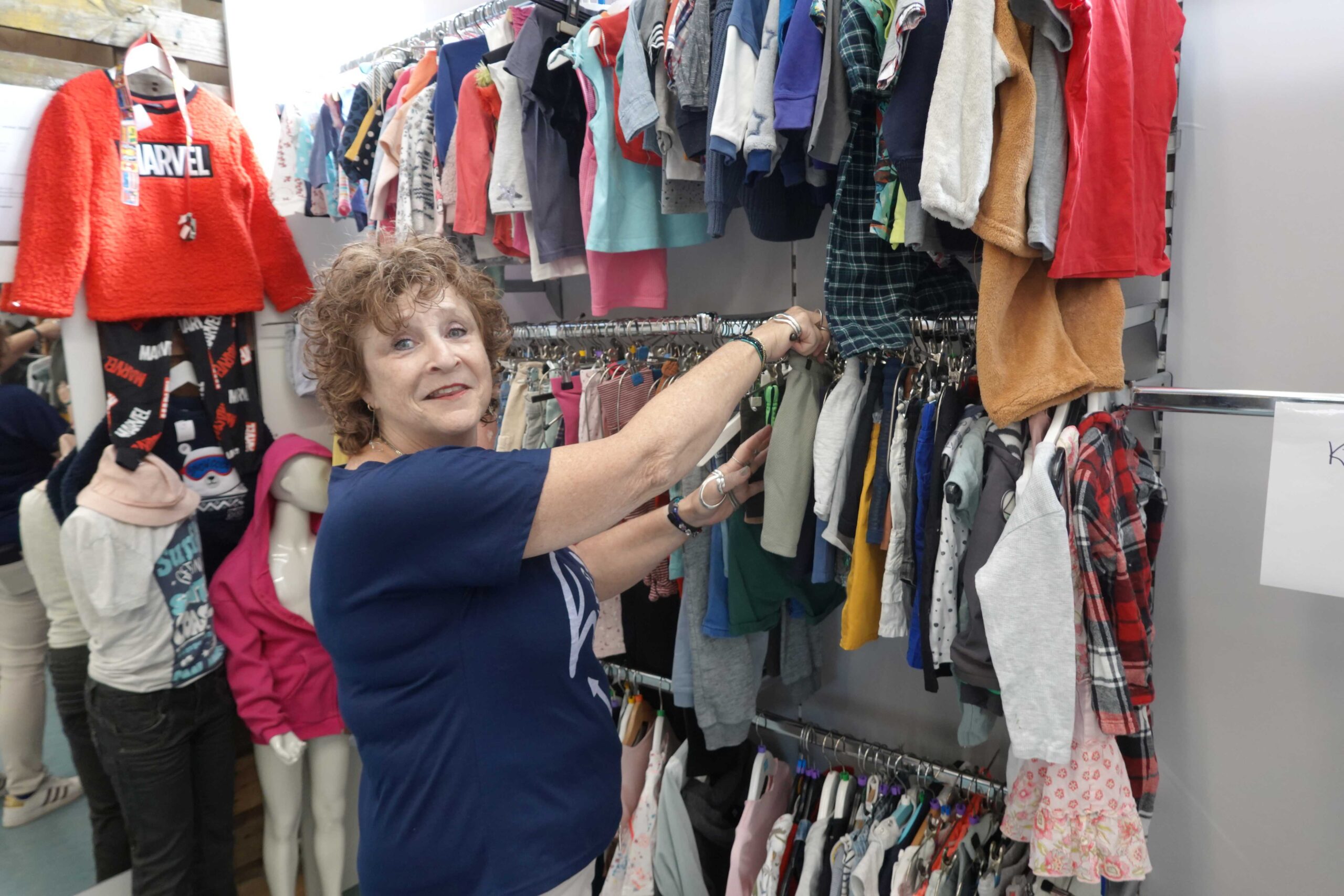 “Ik wilde mezelf nuttig maken. Gewoon thuiszitten is niks voor mij. Toen ik hier met mijn dochter binnenliep, zei ze: ‘Mam, dit is misschien wel wat voor jou’. En dat was ook zo. Ik begon net voor de tweede coronalockdown, en op de kledingafdeling was op dat moment niemand. Dus ik kon meteen aan de slag.”